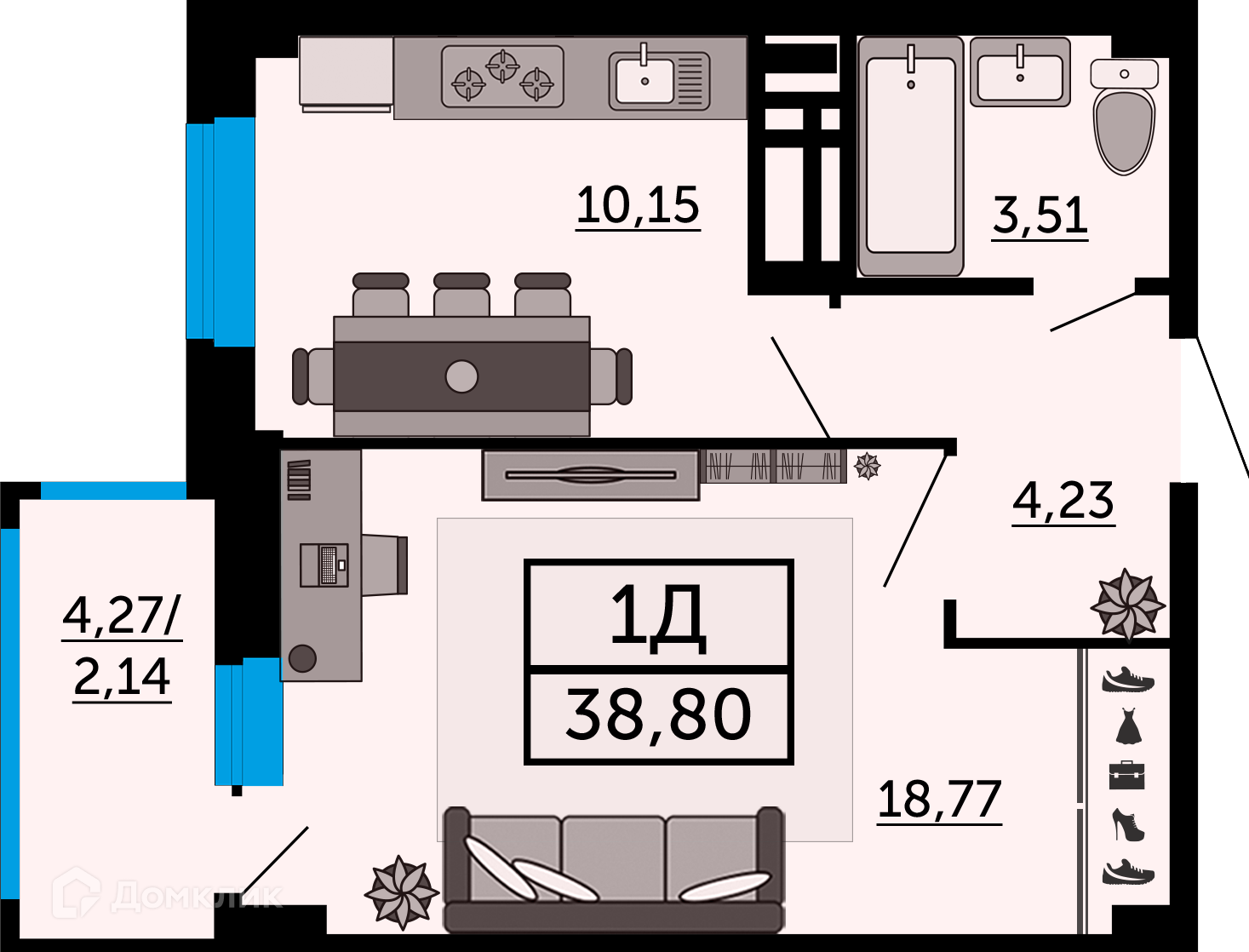 - ✅ Просторная жилая площадь: 18.77 м².