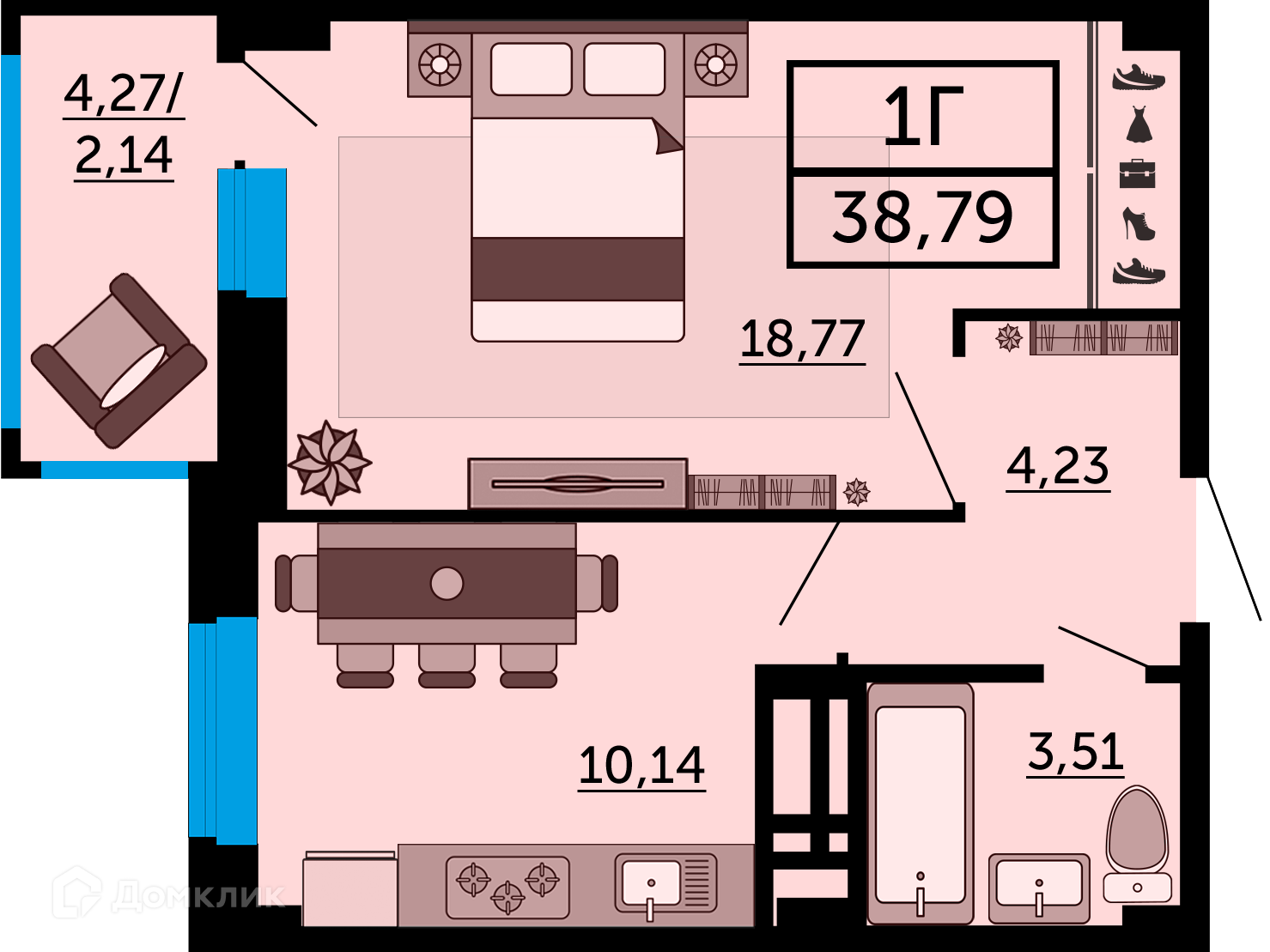 - ✅ Уютная жилая площадь: 18.77 м².