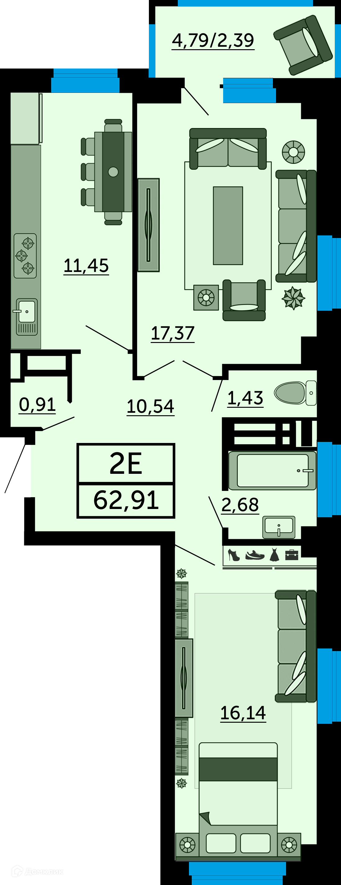 - ✅ Кухня: 11.45 м² — место для кулинарных шедевров.