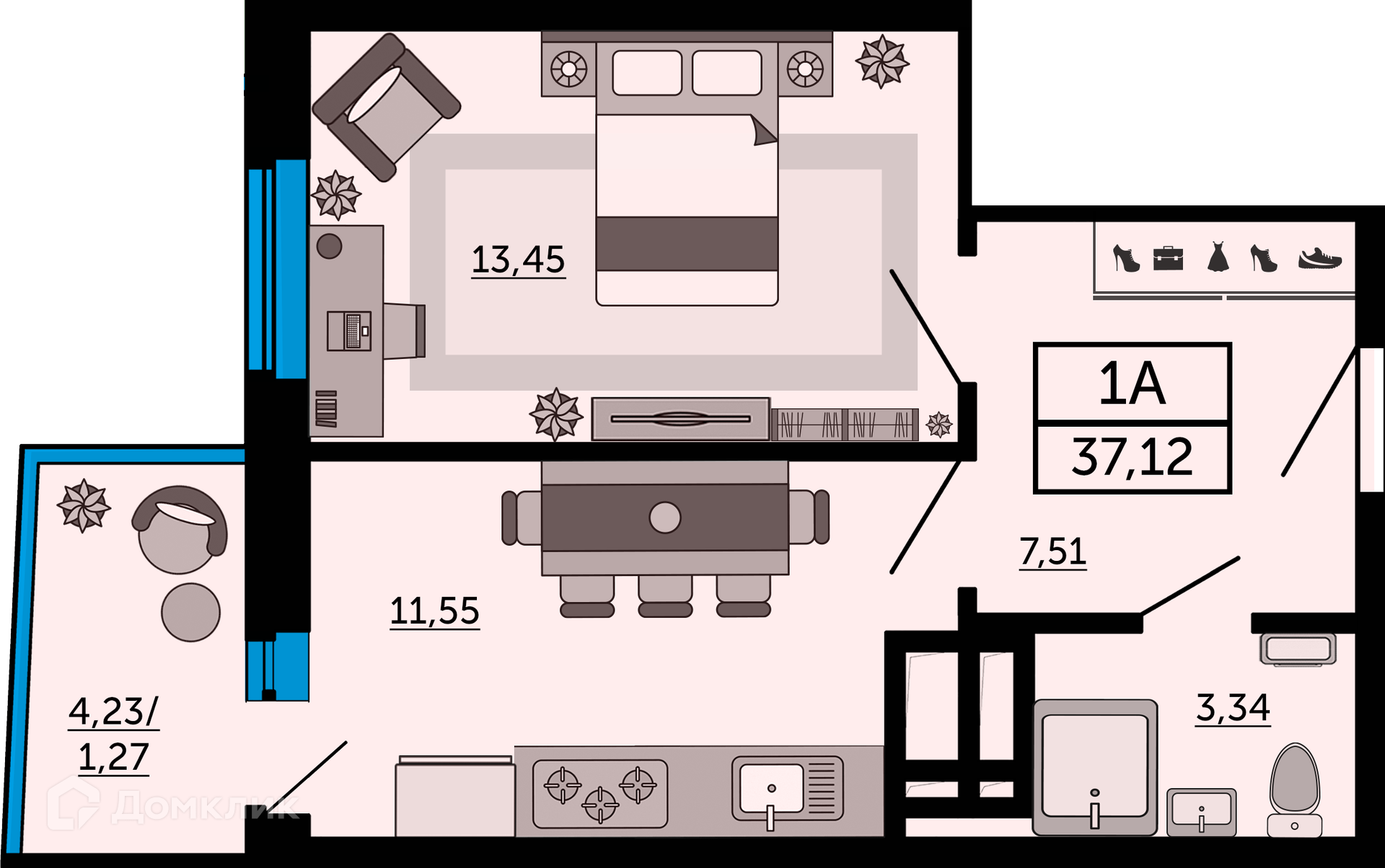 - ✅ Кухня: 11.55 м² — идеальна для семейных ужинов.