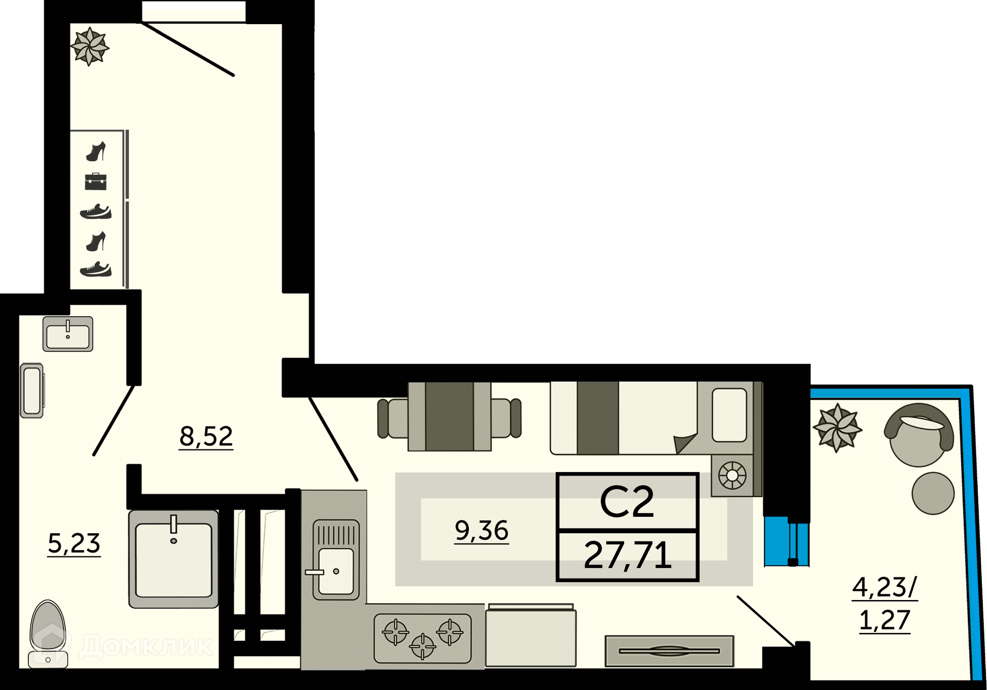 - ✅ Общая площадь: 27.6 м².