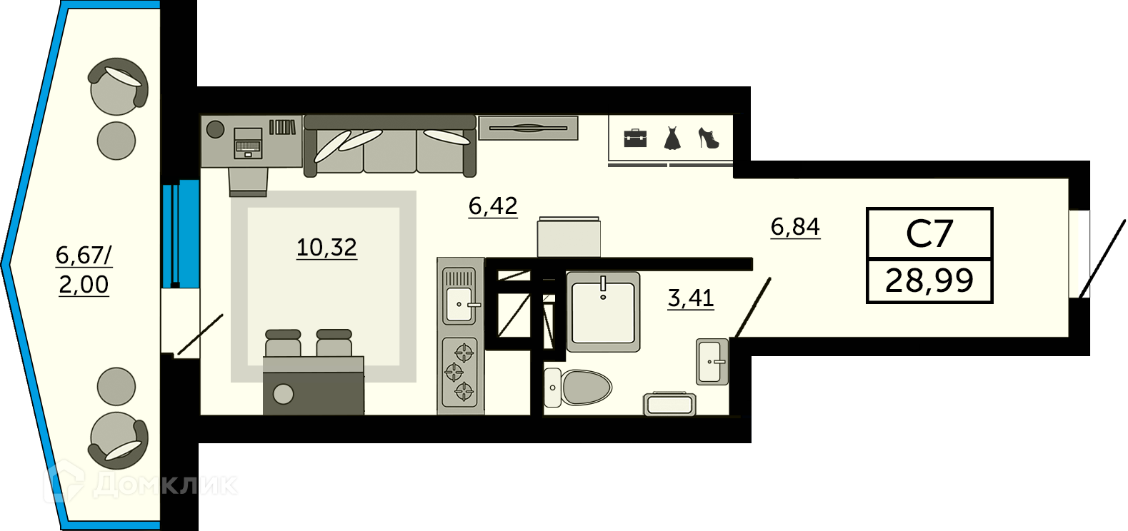 - ✅ Просторная жилая площадь: 10.32 м².