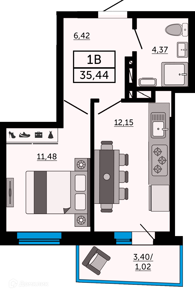 - ✅ Просторная жилая площадь: 11.48 м².