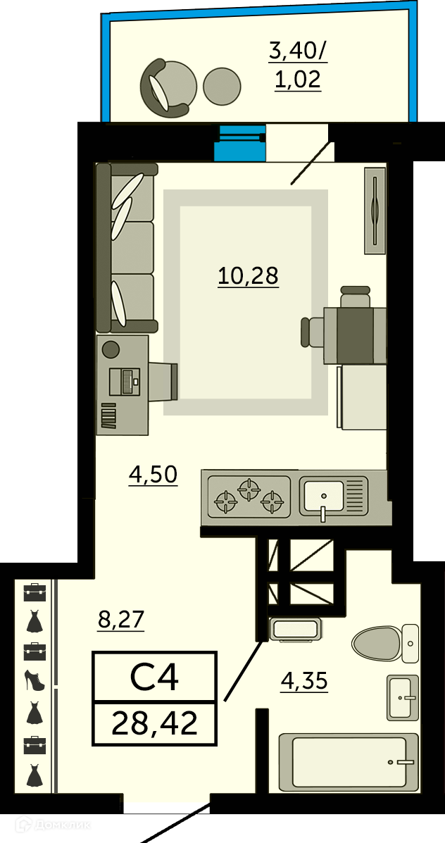 - ✅ Уютная жилая площадь: 10.28 м².