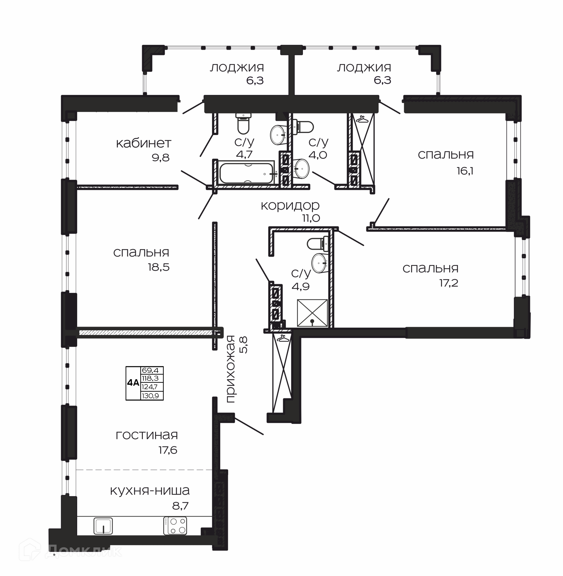 - Общая площадь: 130.5 м²