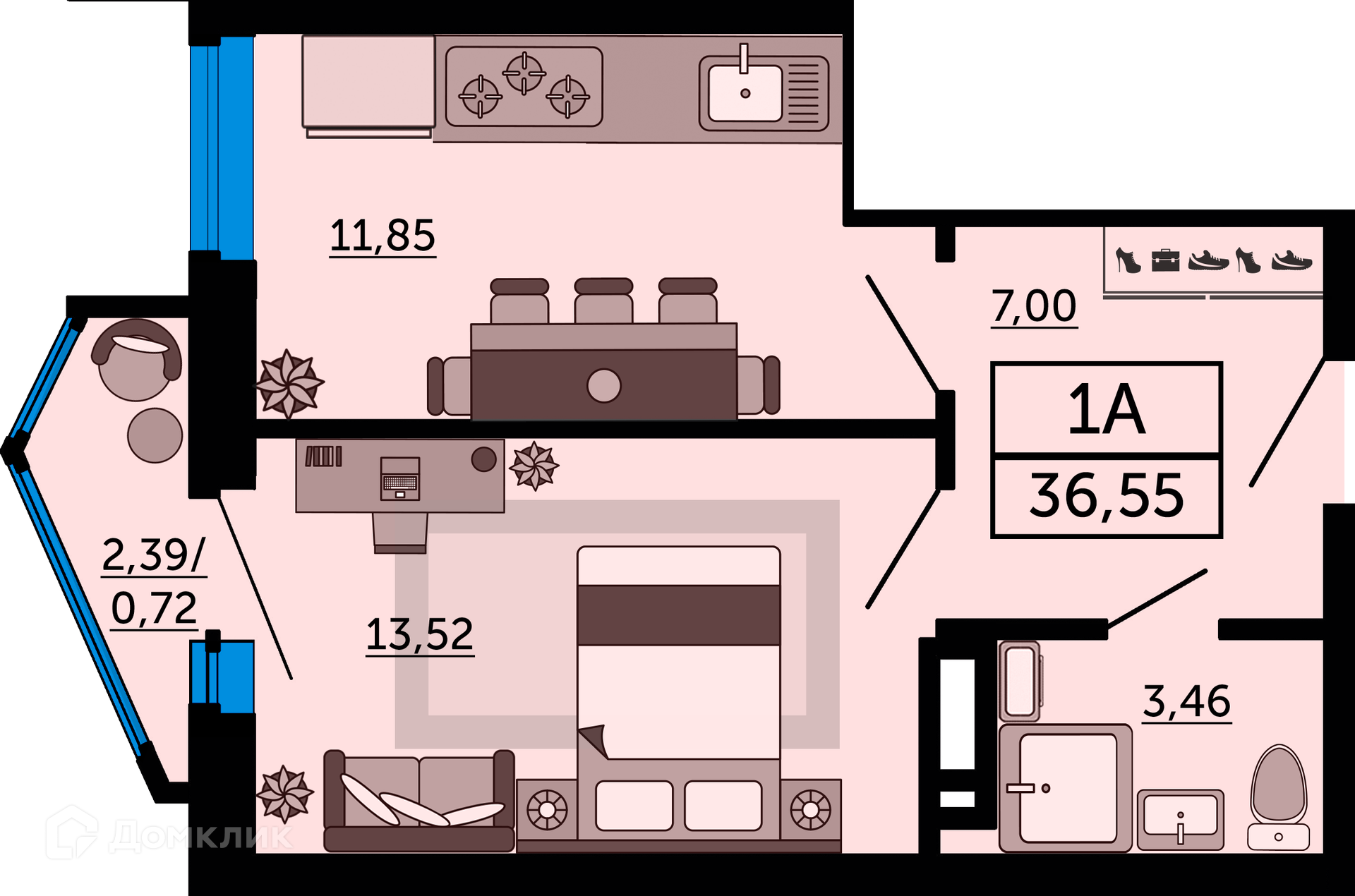 - ✅ Кухня: 11.85 м² — место для кулинарных шедевров.