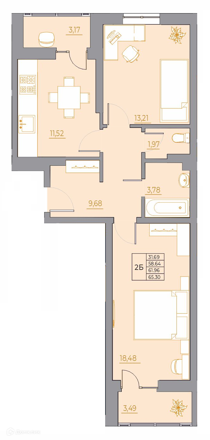 - ✅ Кухня: 11.52 м² — место для кулинарных шедевров.
