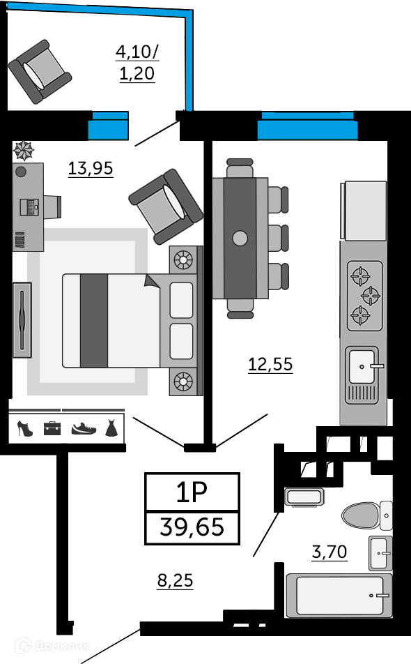 - ✅ Кухня: 13.95 м² — эргономичное пространство.