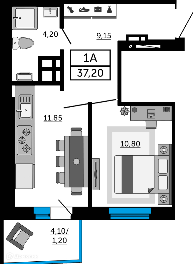 - ✅ Кухня: 10.8 м² — эргономичное пространство.
