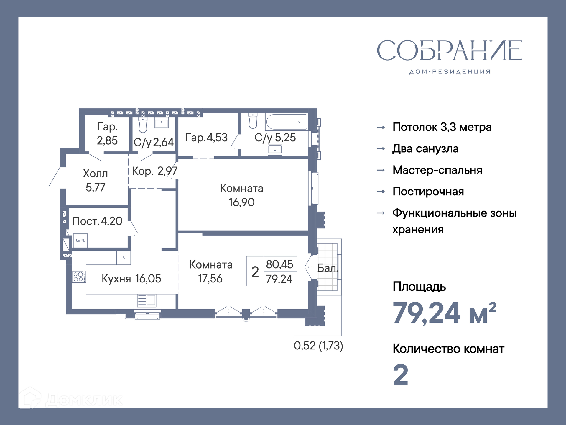 Дом-резиденция «Собрание» - это коллекция 169 уникальных лотов в доме с переосмыслением классической архитектуры и использованием материалов премиум-качества. Проект уже вошел в ТОП-10 лучших элитных новостроек России по версии ЕРЗ.РФ благодаря высоким потребительским качествам. На закрытой камерной территории находится всё необходимое для полной и комфортной жизни. Дизайнерское лобби, ресторан с отдельным залом для резидентов, собственная библиотека, приватная зона для работы, оборудованный фитнес зал, бьюти-коворкинг, детский игровой клуб, подземный паркинг на 163 машиноместа. В доме предусмотрена зона круглосуточной рецепции, где будет действовать принцип отельного обслуживания. Резиденты могут вызвать клининг, отдать вещи в химчистку, организовать доставку, не выходя из собственной квартиры. Дом-резиденция «Собрание» получил наивысший класс энергоэффективности А++ и будет обслуживаться по технологии «умный дом» с круглосуточным видеонаблюдением. Автономность от городских сетей обеспечивает собственная котельная на крыше. В каждой квартире запроектированы потолки от 3,3 метра, профессиональная шумоизоляция пола и межквартирных стен, двухуровневая водоочистительная система с подачей питьевой воды и возможность установки теплого водяного пола.