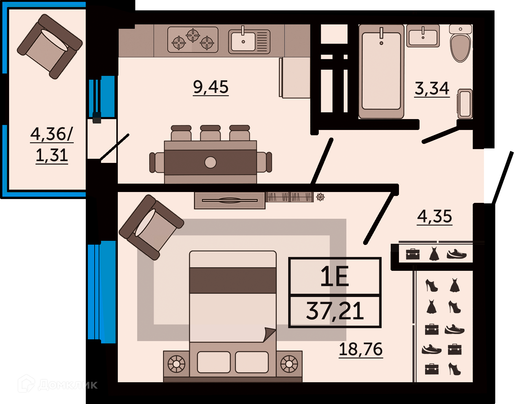 Квартира расположена на 9-м этаже 26-этажного дома.