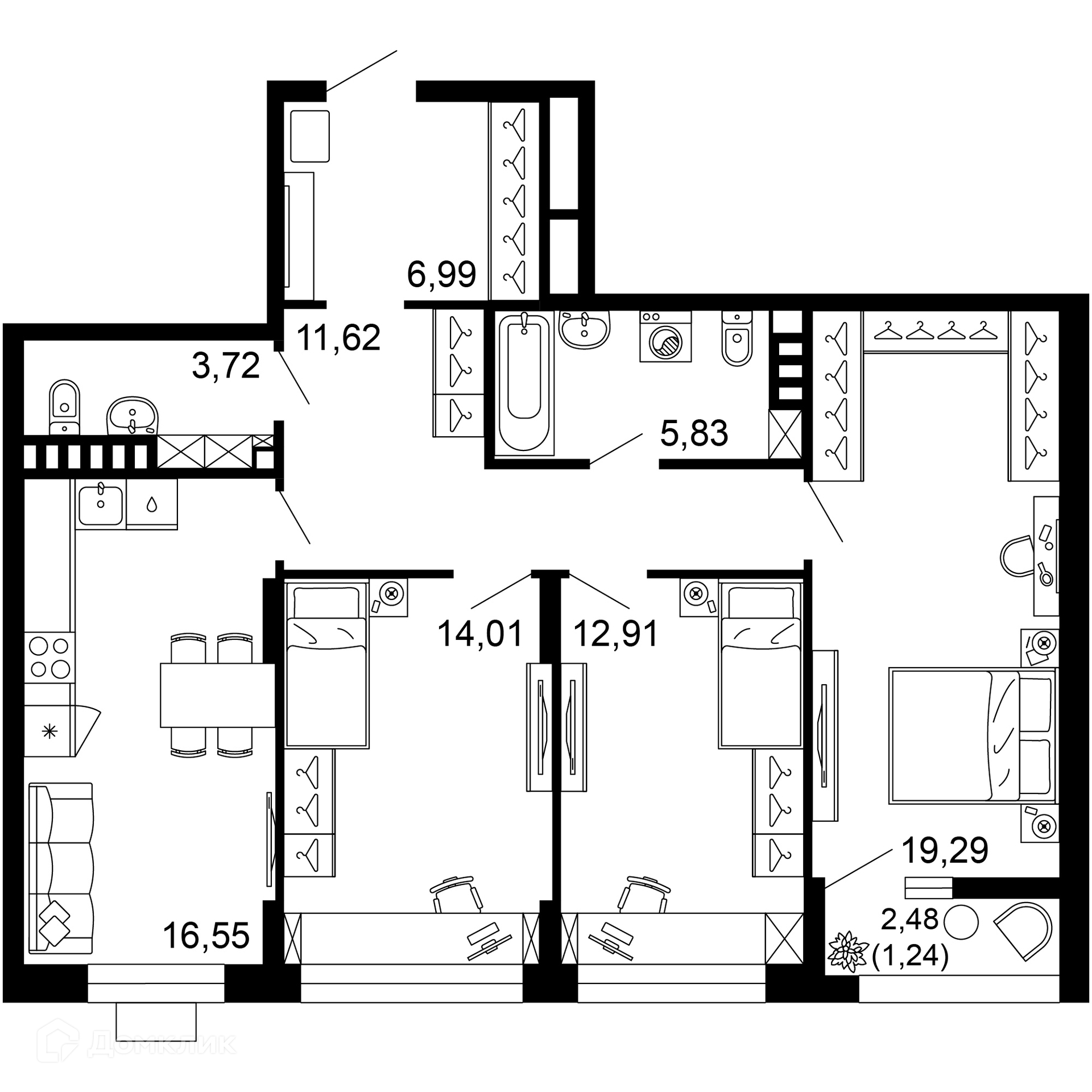 Площади квартир
