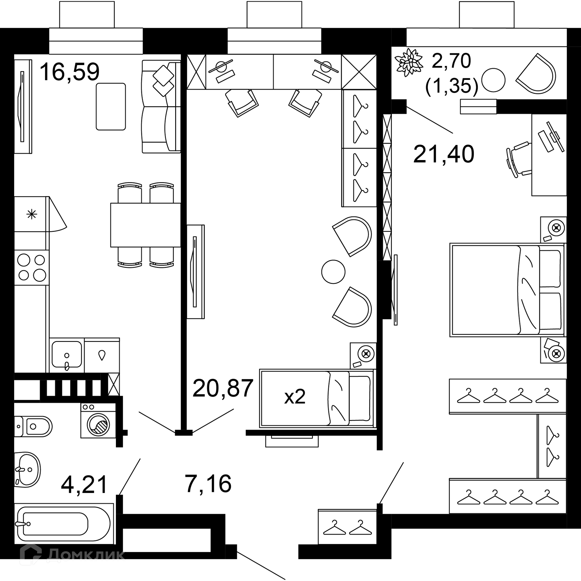 Площади квартир