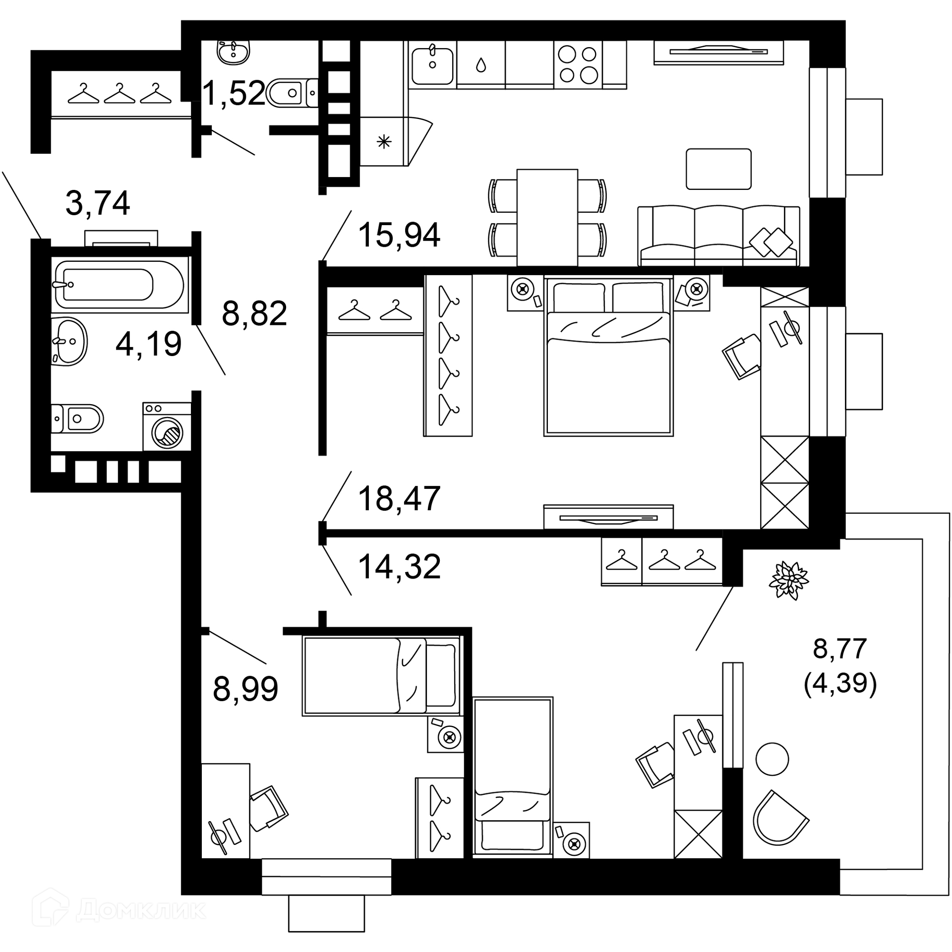 Площади квартир