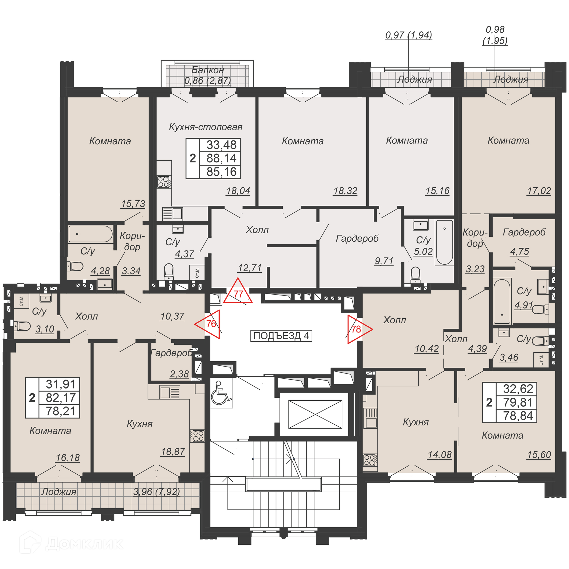 Площади квартир