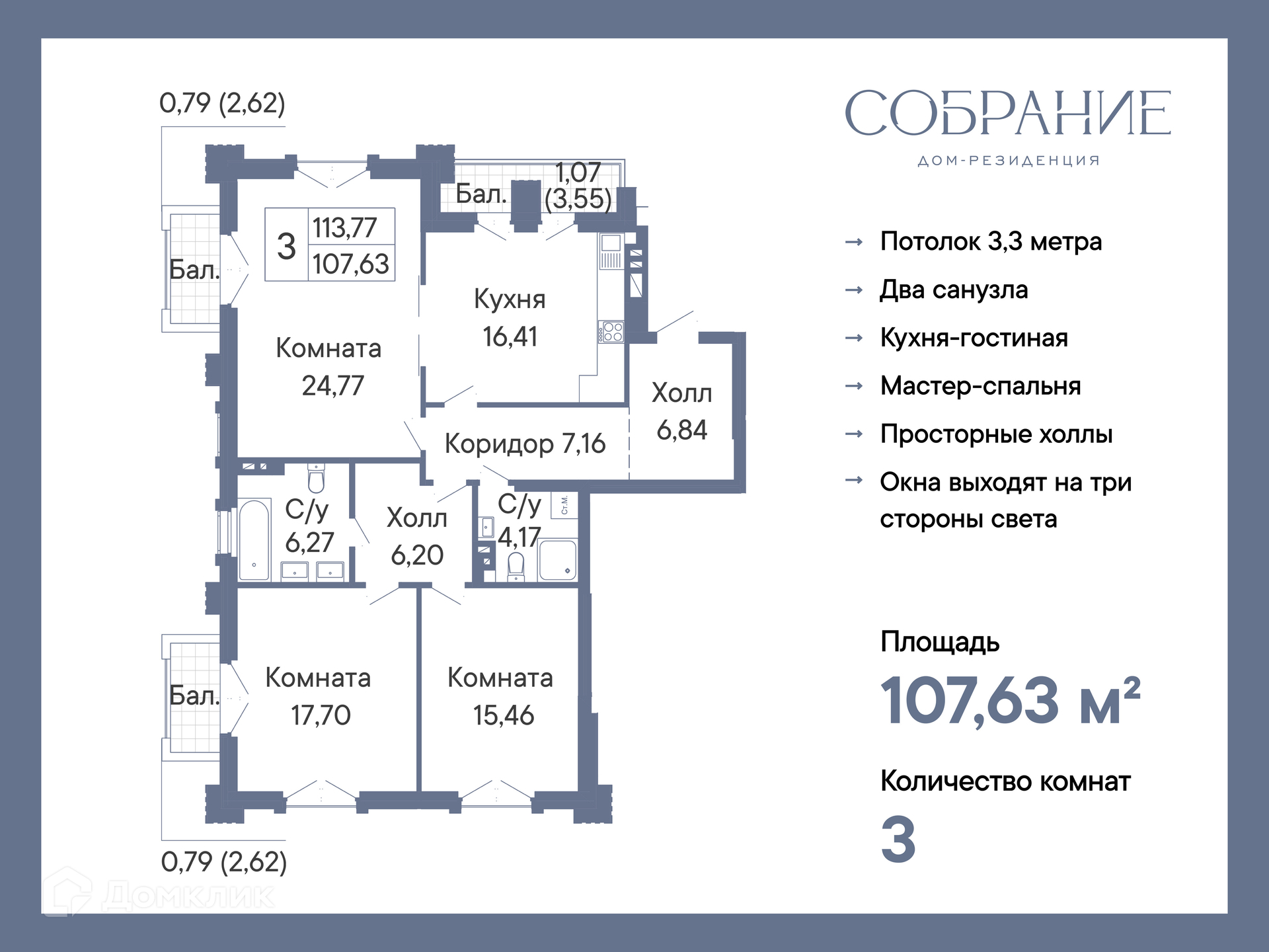 Доступна к покупке 3-комнатная квартира в современном жилом комплексе "ЖК ДОМ-РЕЗИДЕНЦИЯ СОБРАНИЕ" 🏢. Квартира расположена на 6-м этаже 9-этажного дома. Прекрасный выбор для семьи.