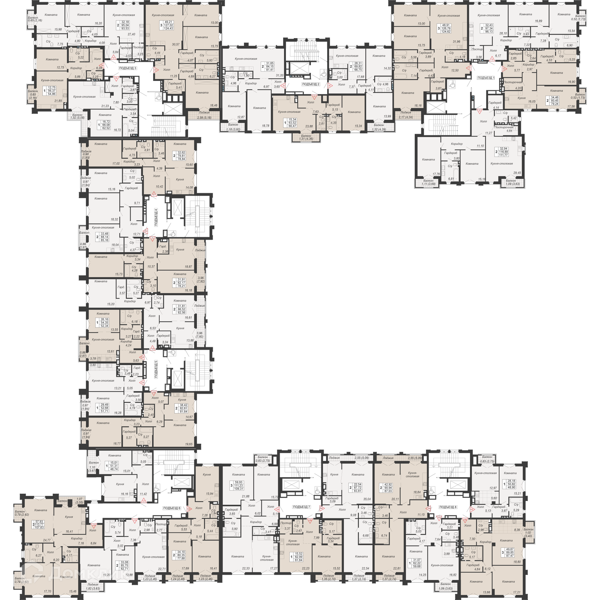 Площади квартир