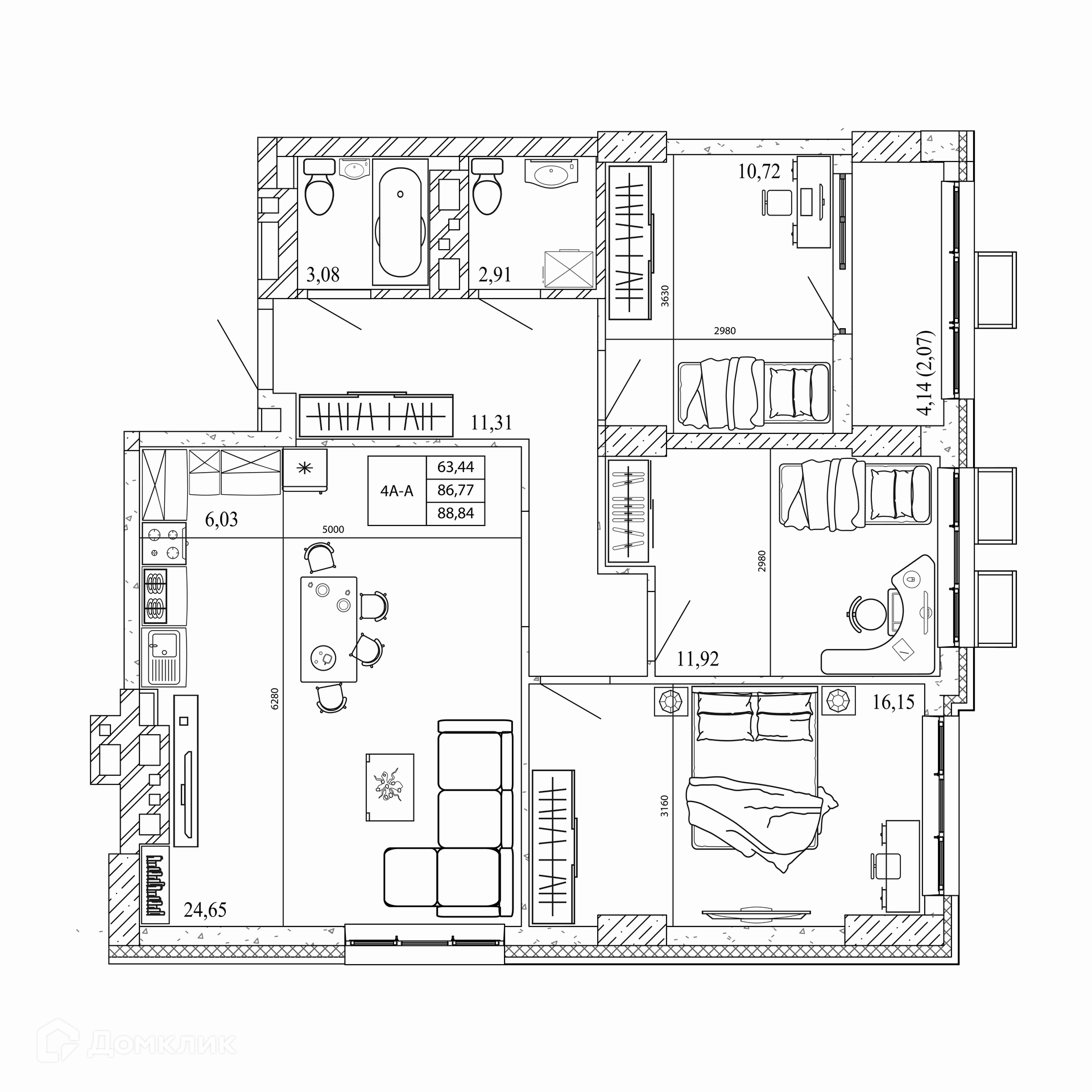 Площади квартир