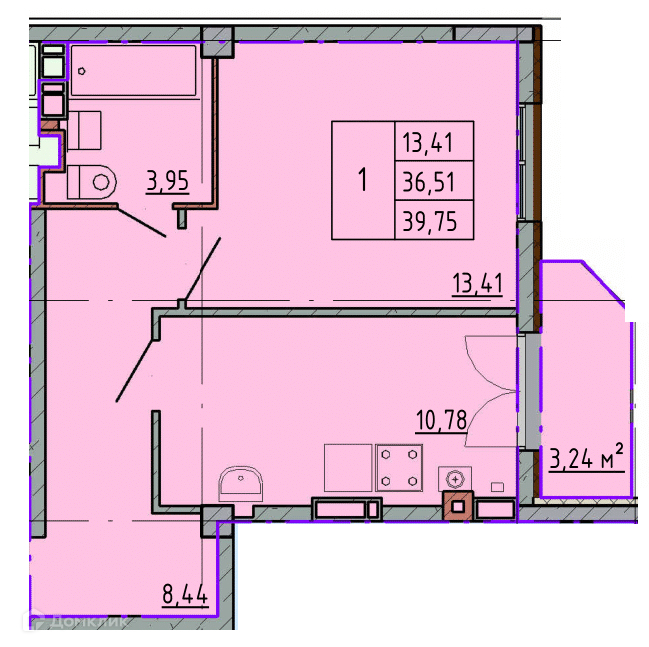 Планировка 1 комн. в ЖК Артём 2
