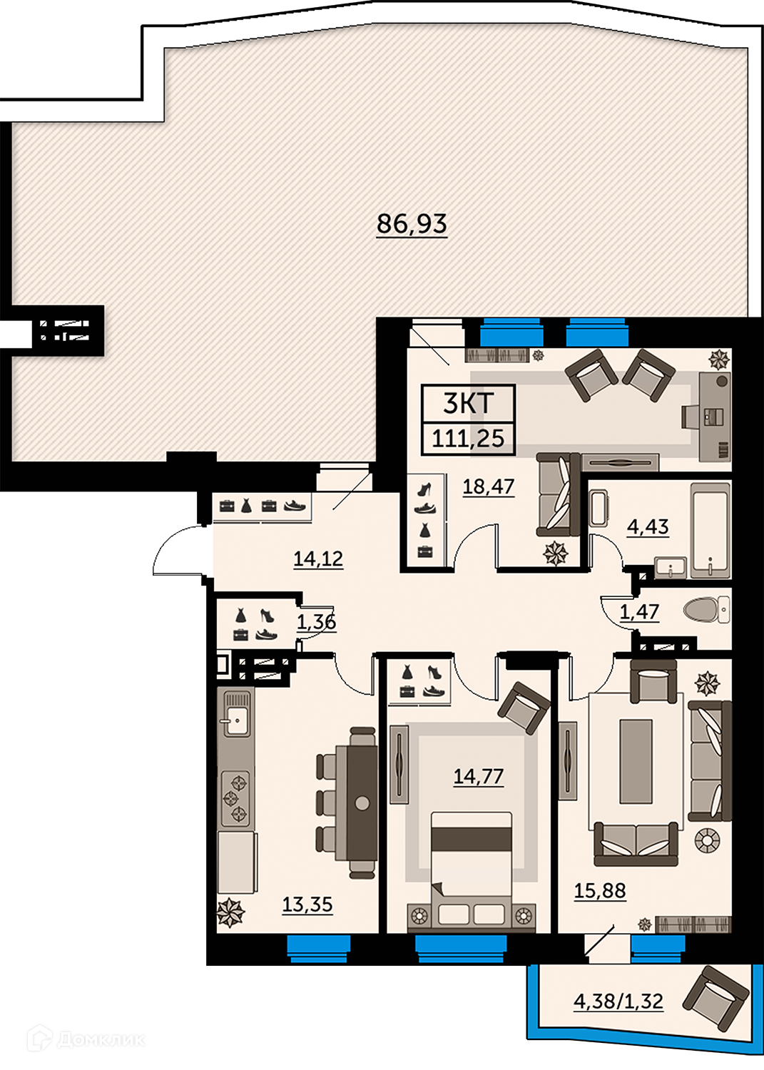 Продается 3-комнатная квартира в новом жилом комплексе "ЖК Сердце Ростова 2" 🏢. Квартира расположена на 12-м этаже 25-этажного дома. Прекрасный выбор для комфортной жизни.