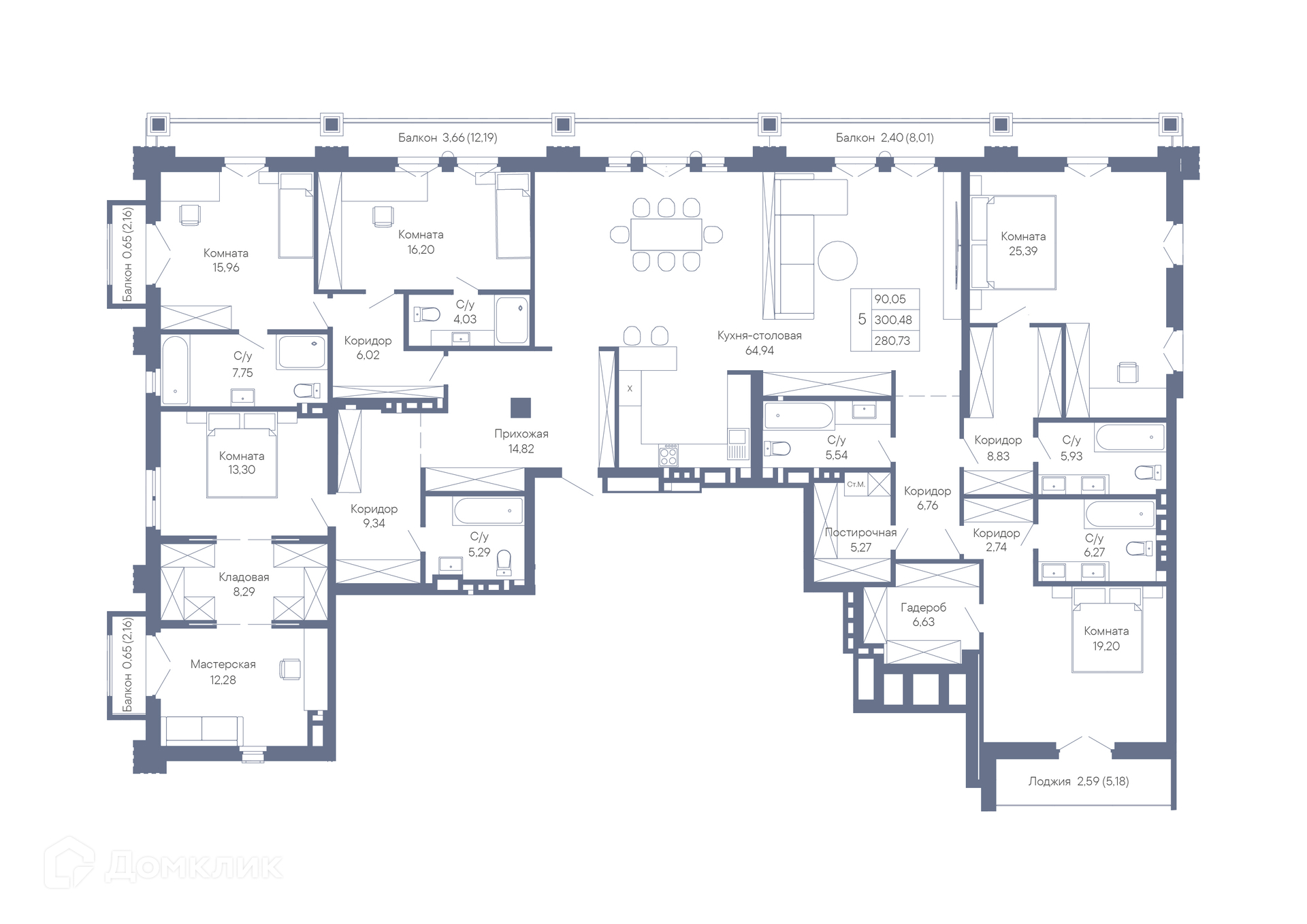Площади квартир