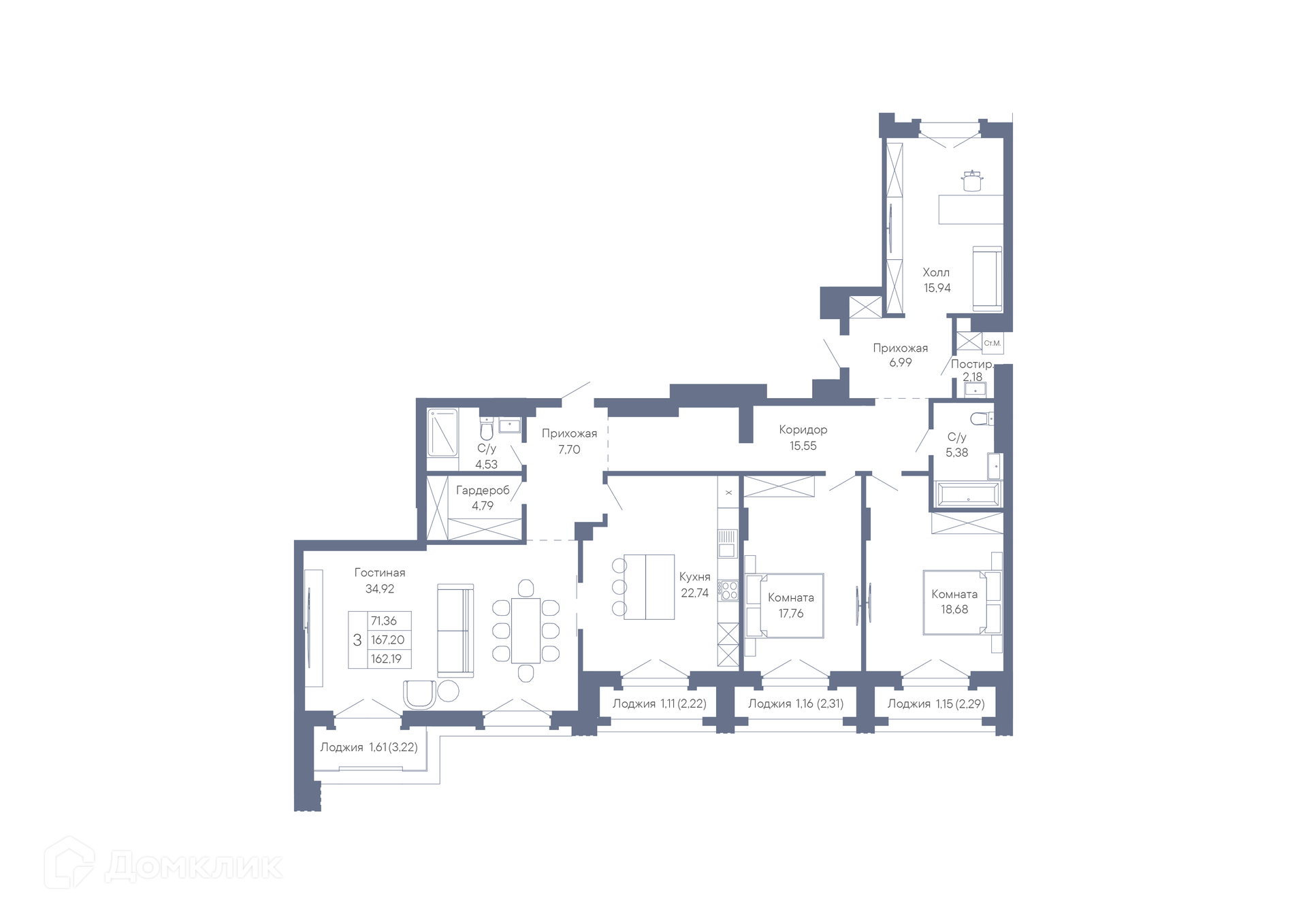 Площади квартир