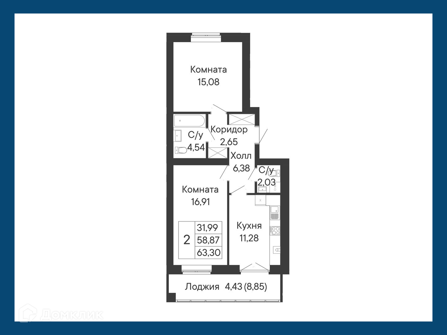 В продаже 2-комнатная квартира в современном жилом комплексе "ЖК Курортный квартал Ривьера" 🏢. Квартира расположена на 2-м этаже 9-этажного дома. Отличный вариант для семьи.