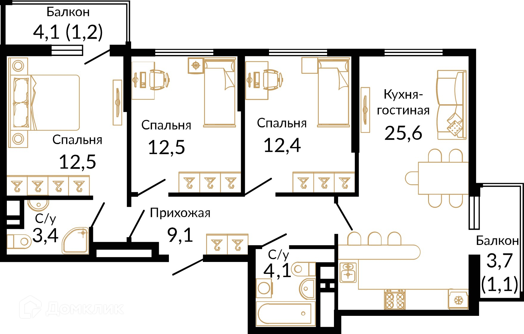 Площади квартир