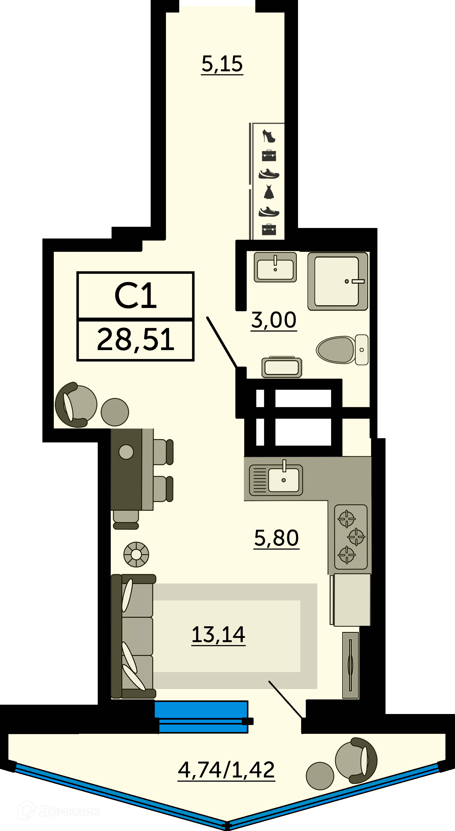 - ✅ Общая площадь: 28.51 м².