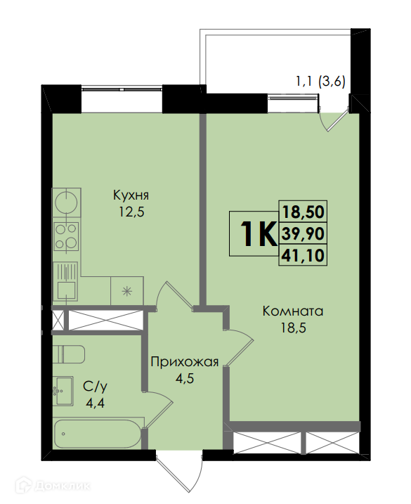 - ✅ Уютная жилая площадь: 18.5 м².