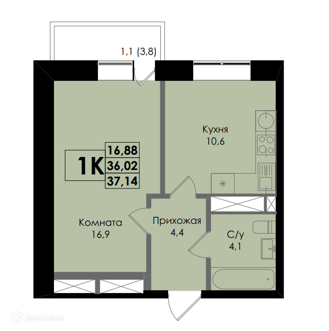 - ✅ Кухня: 10.6 м² — эргономичное пространство.