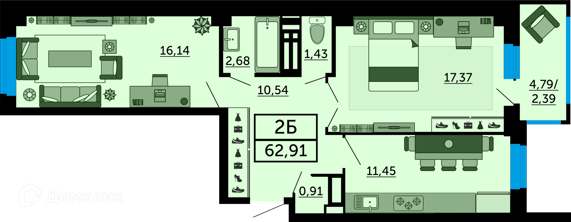 - ✅ Кухня: 11.45 м² — идеальна для семейных ужинов.