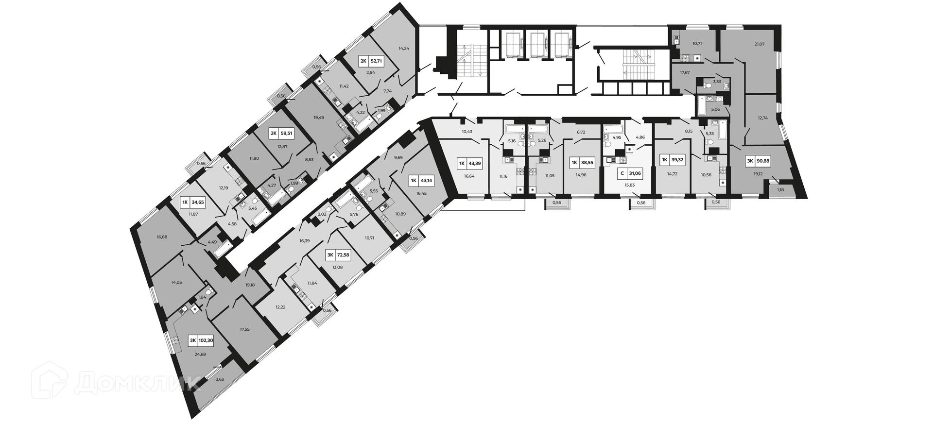 - Общая площадь: 43.39 м²