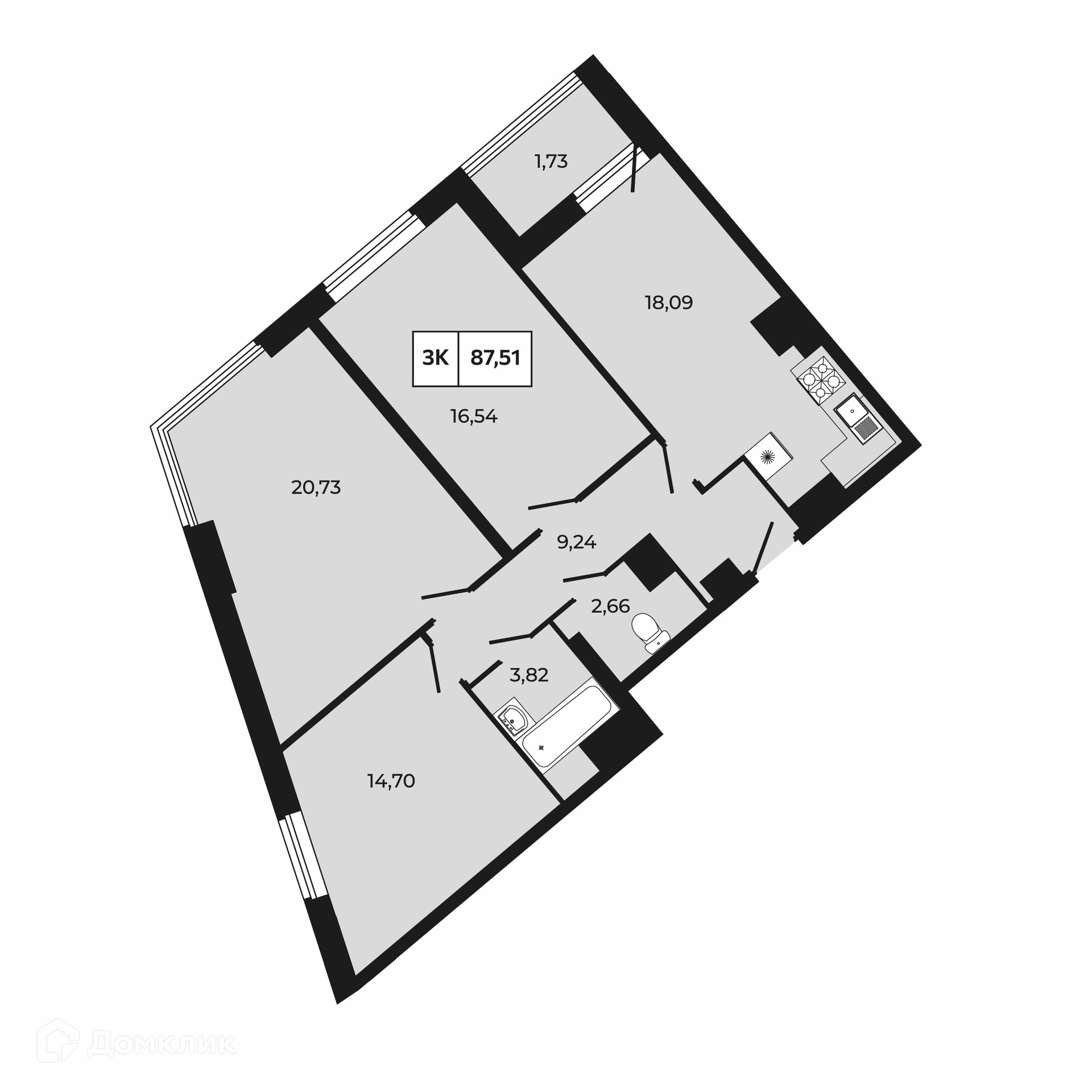 - ✅ Кухня: 16.09 м² — эргономичное пространство.