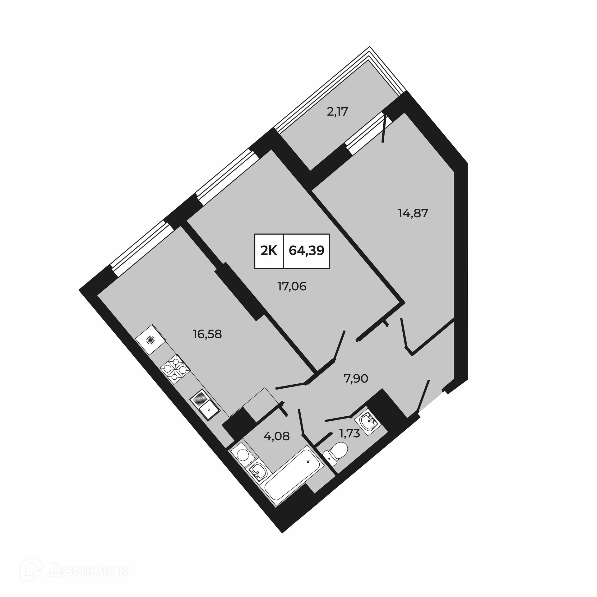 - ✅ Кухня: 16.58 м² — эргономичное пространство.