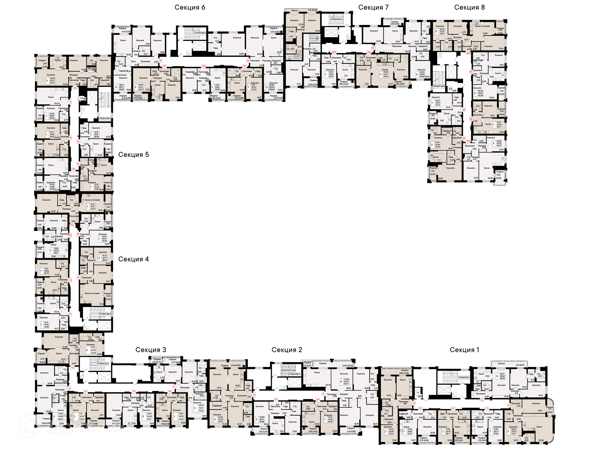Площади квартир