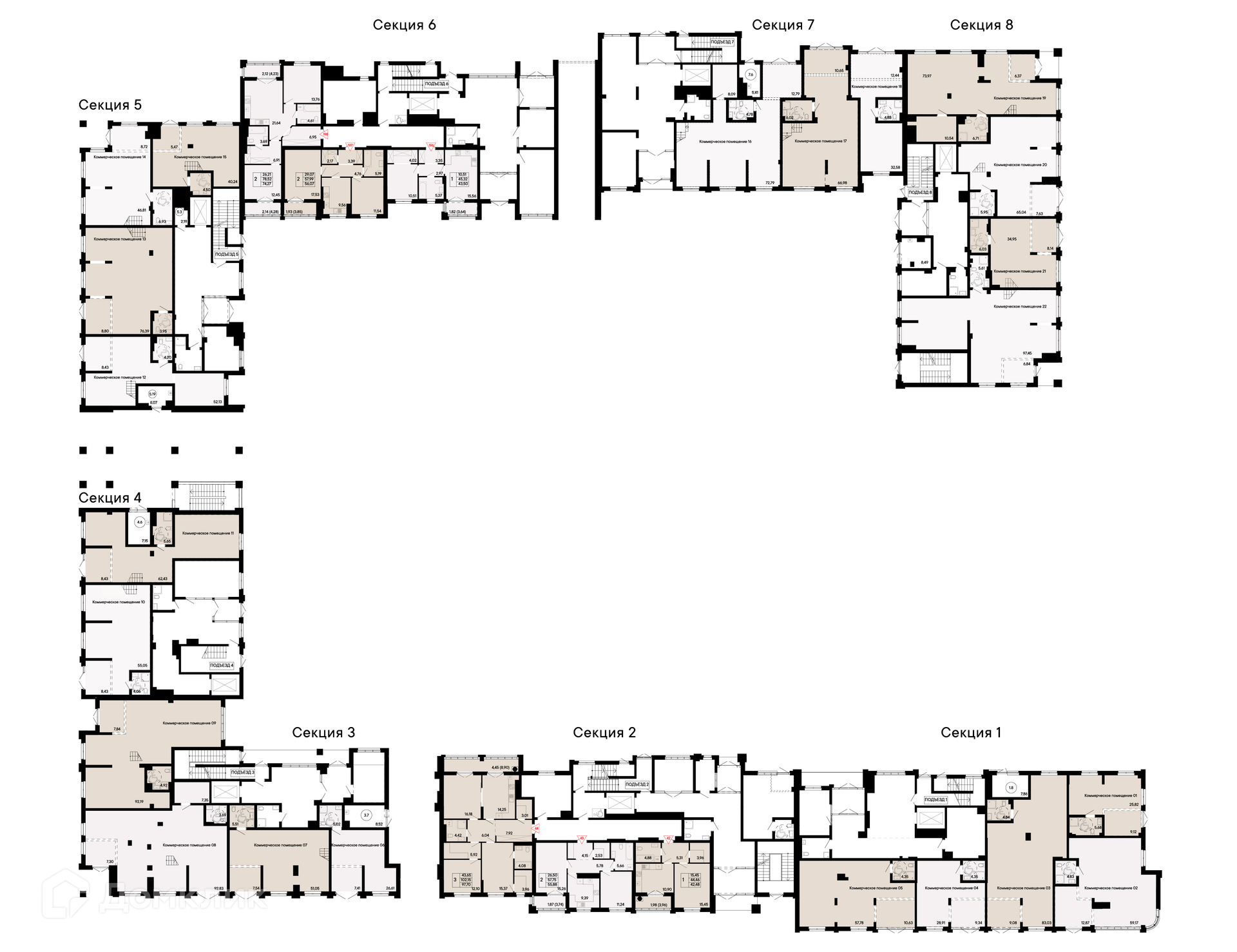Площади квартир