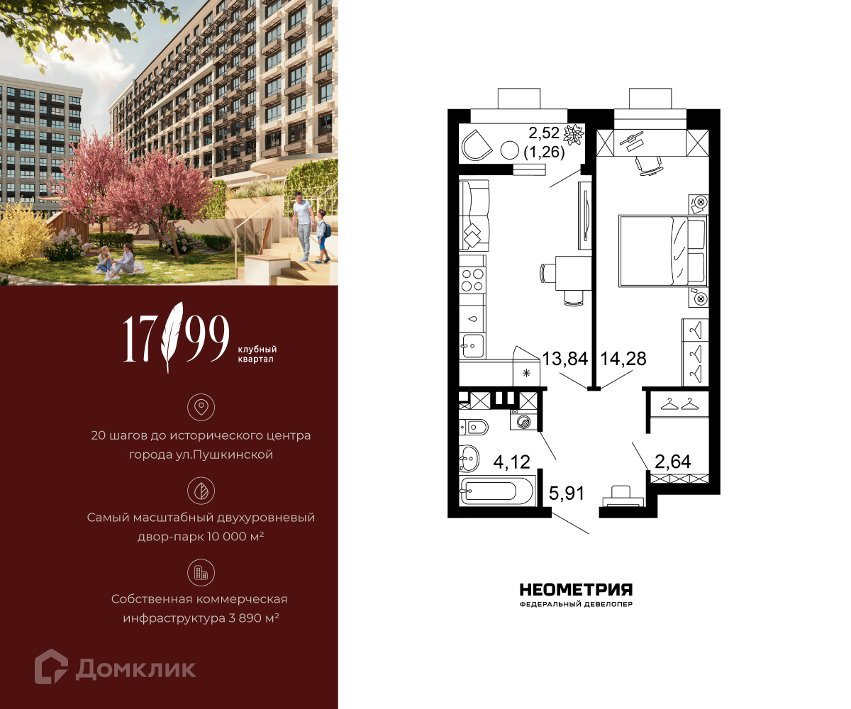 В продаже 1-комнатная квартира в современном жилом комплексе "ЖК 1799" 🏢.