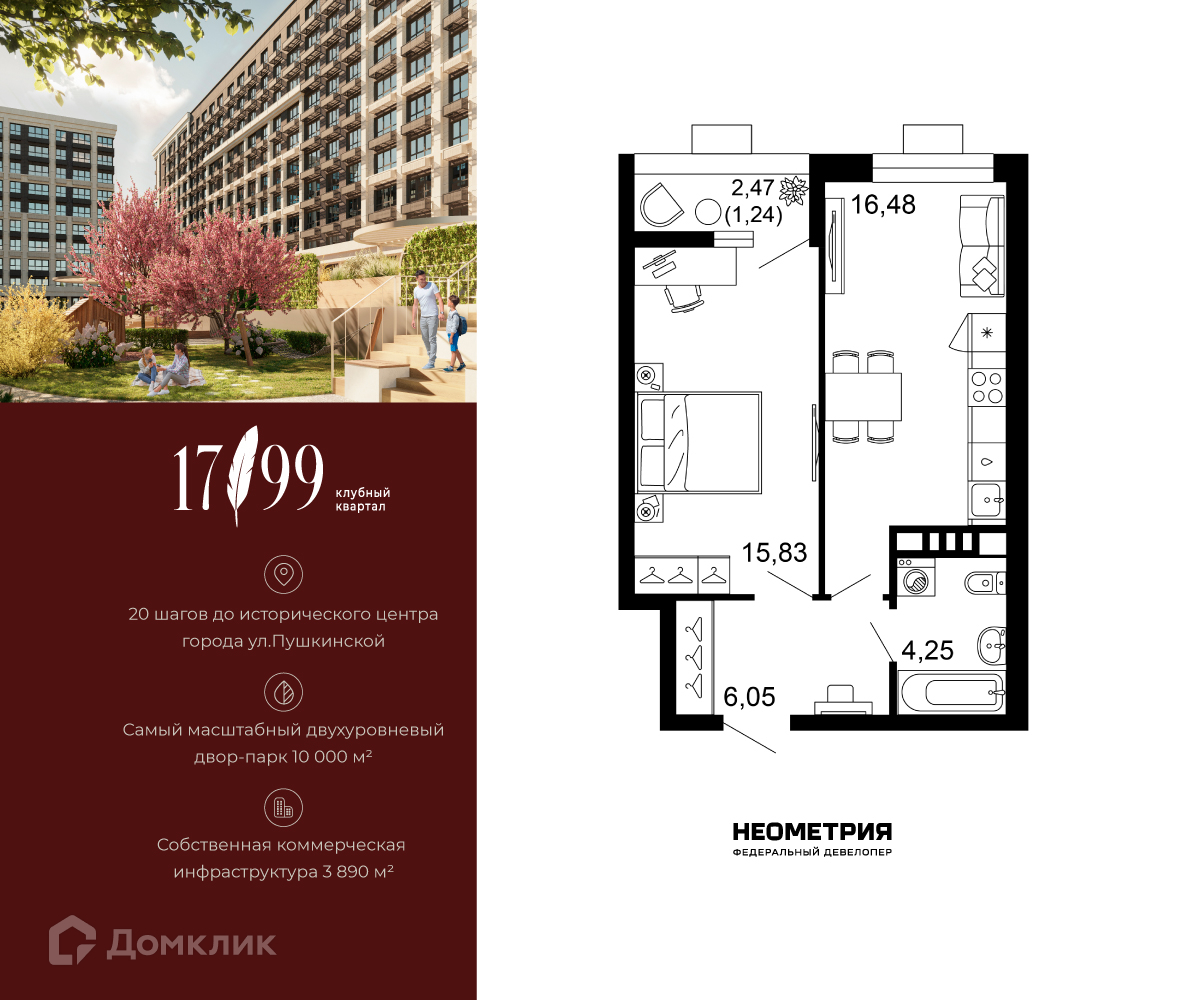 В продаже 1-комнатная квартира в новом жилом комплексе "ЖК 1799" 🏢.