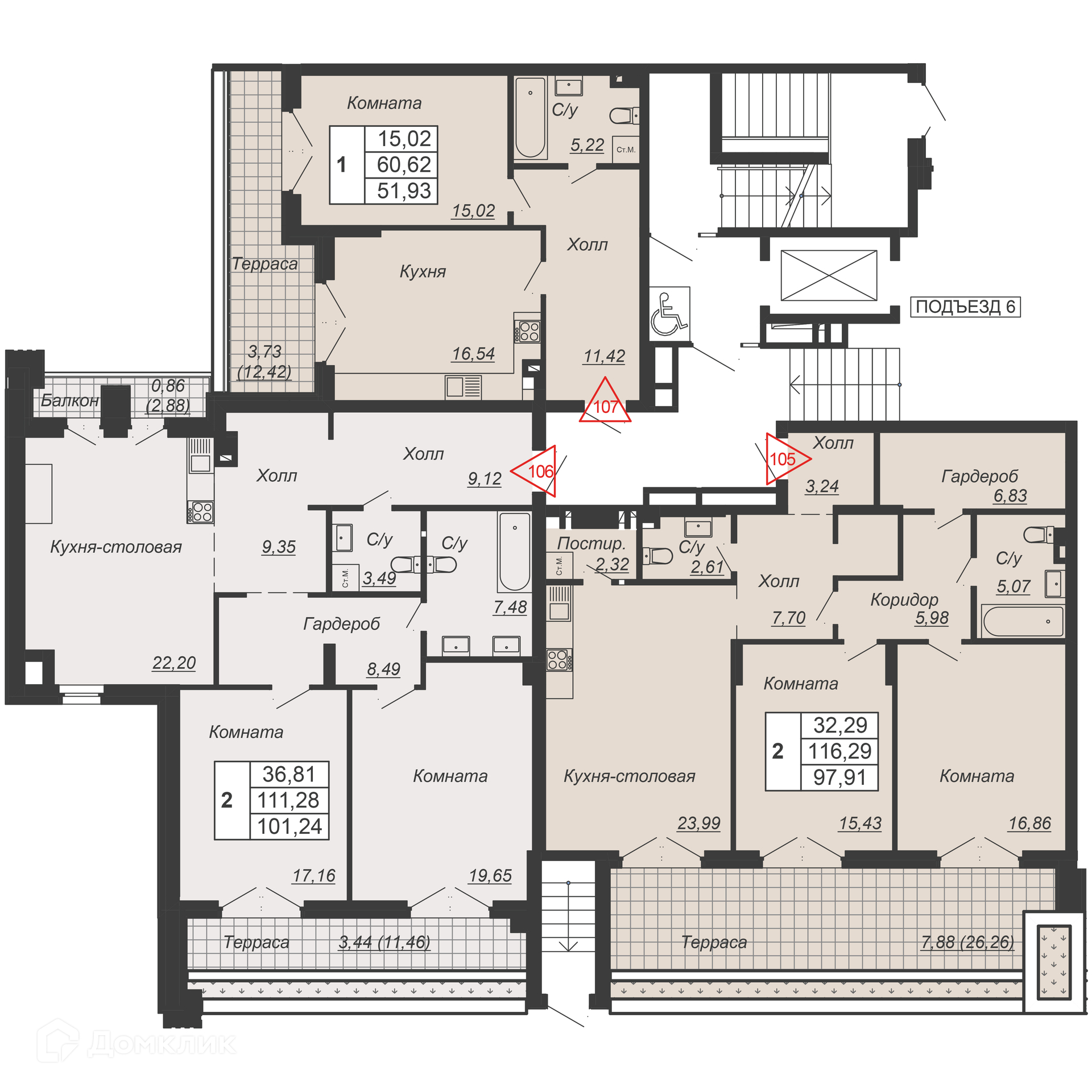 Площади квартир