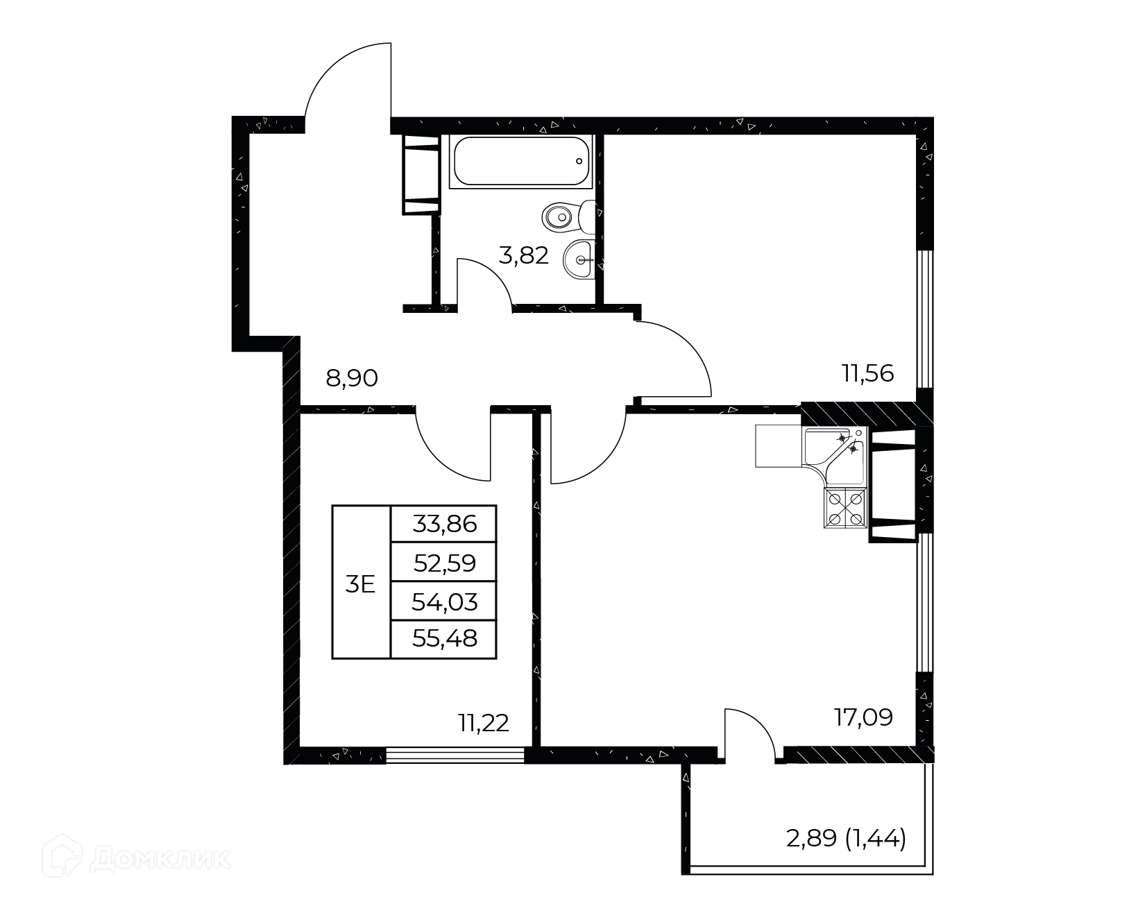 - Общая площадь: 55.48 м²