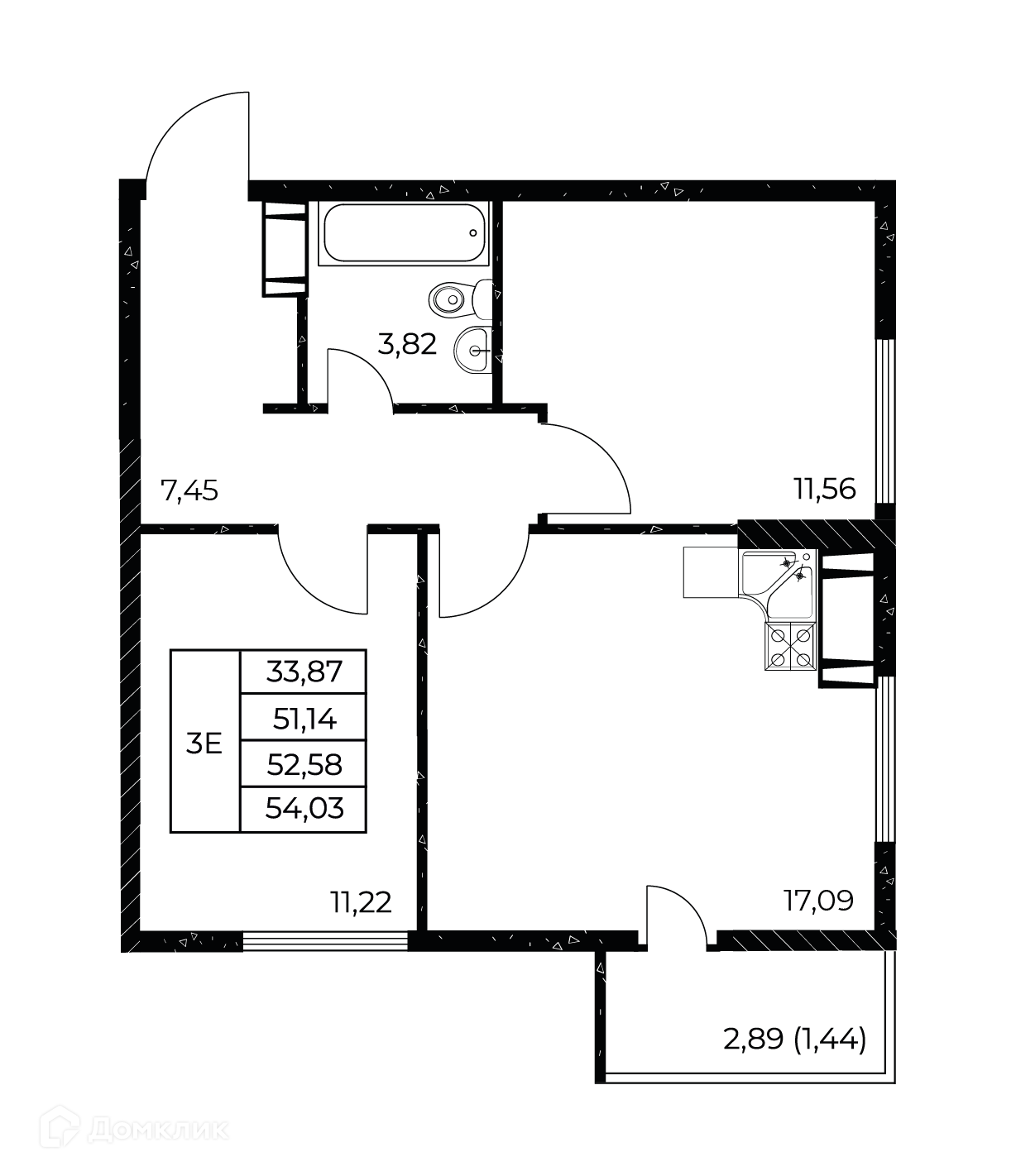 - Общая площадь: 54.03 м²