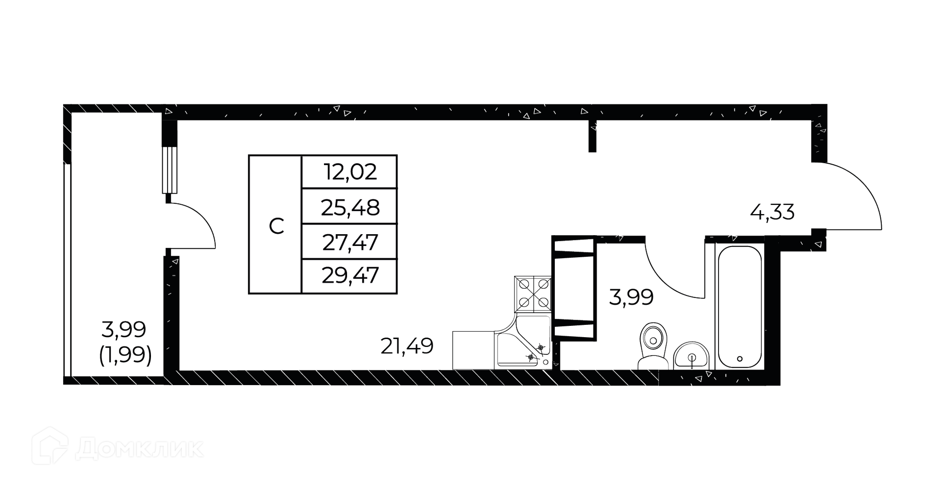 - ✅ Общая площадь: 29.47 м².