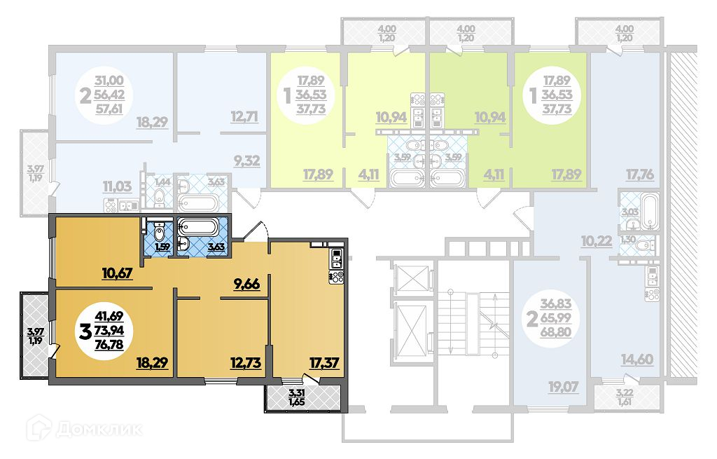 - Общая площадь: 76.78 м²