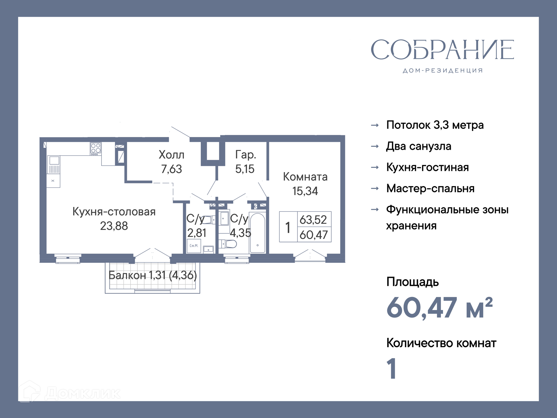 Дом-резиденция «Собрание» - это коллекция 169 уникальных лотов в доме с переосмыслением классической архитектуры и использованием материалов премиум-качества. Проект уже вошел в ТОП-10 лучших элитных новостроек России по версии ЕРЗ.РФ благодаря высоким потребительским качествам. На закрытой камерной территории находится всё необходимое для полной и комфортной жизни. Дизайнерское лобби, ресторан с отдельным залом для резидентов, собственная библиотека, приватная зона для работы, оборудованный фитнес зал, бьюти-коворкинг, детский игровой клуб, подземный паркинг на 163 машиноместа. В доме предусмотрена зона круглосуточной рецепции, где будет действовать принцип отельного обслуживания. Резиденты могут вызвать клининг, отдать вещи в химчистку, организовать доставку, не выходя из собственной квартиры. Дом-резиденция «Собрание» получил наивысший класс энергоэффективности А++ и будет обслуживаться по технологии «умный дом» с круглосуточным видеонаблюдением. Автономность от городских сетей обеспечивает собственная котельная на крыше. В каждой квартире запроектированы потолки от 3,3 метра, профессиональная шумоизоляция пола и межквартирных стен, двухуровневая водоочистительная система с подачей питьевой воды и возможность установки теплого водяного пола.
