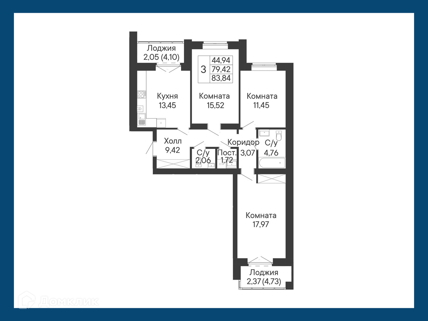 Площади квартир