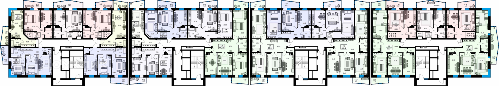 Площади квартир