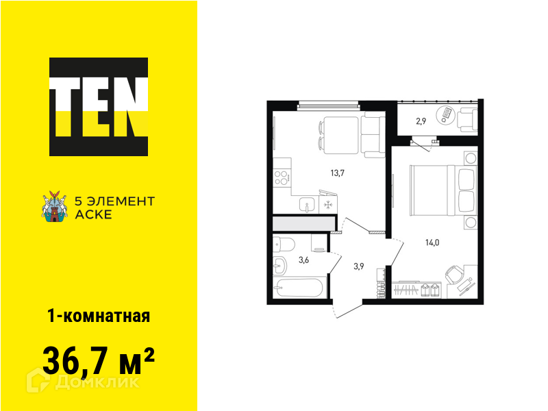 Предлагается 1-комнатная квартира в современном жилом комплексе "ЖК 5 элемент" 🏢.