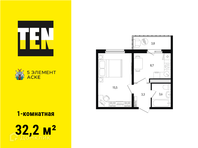В продаже 1-комнатная квартира в современном жилом комплексе "ЖК 5 элемент" 🏢.