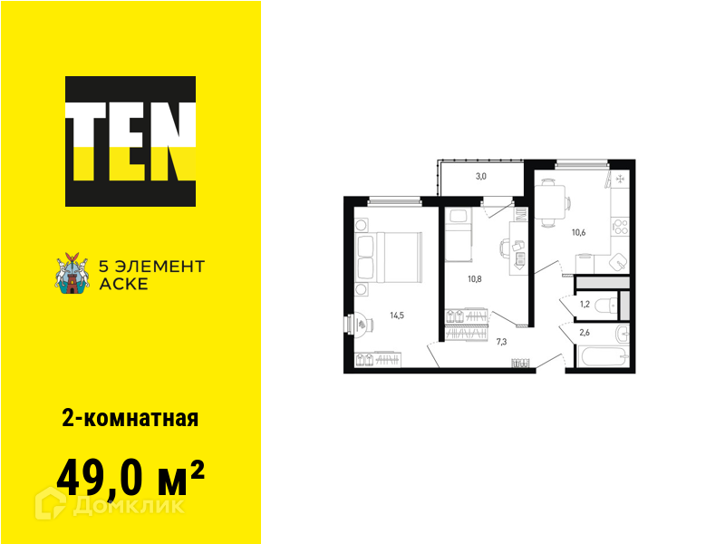 - Общая площадь: 49 м²